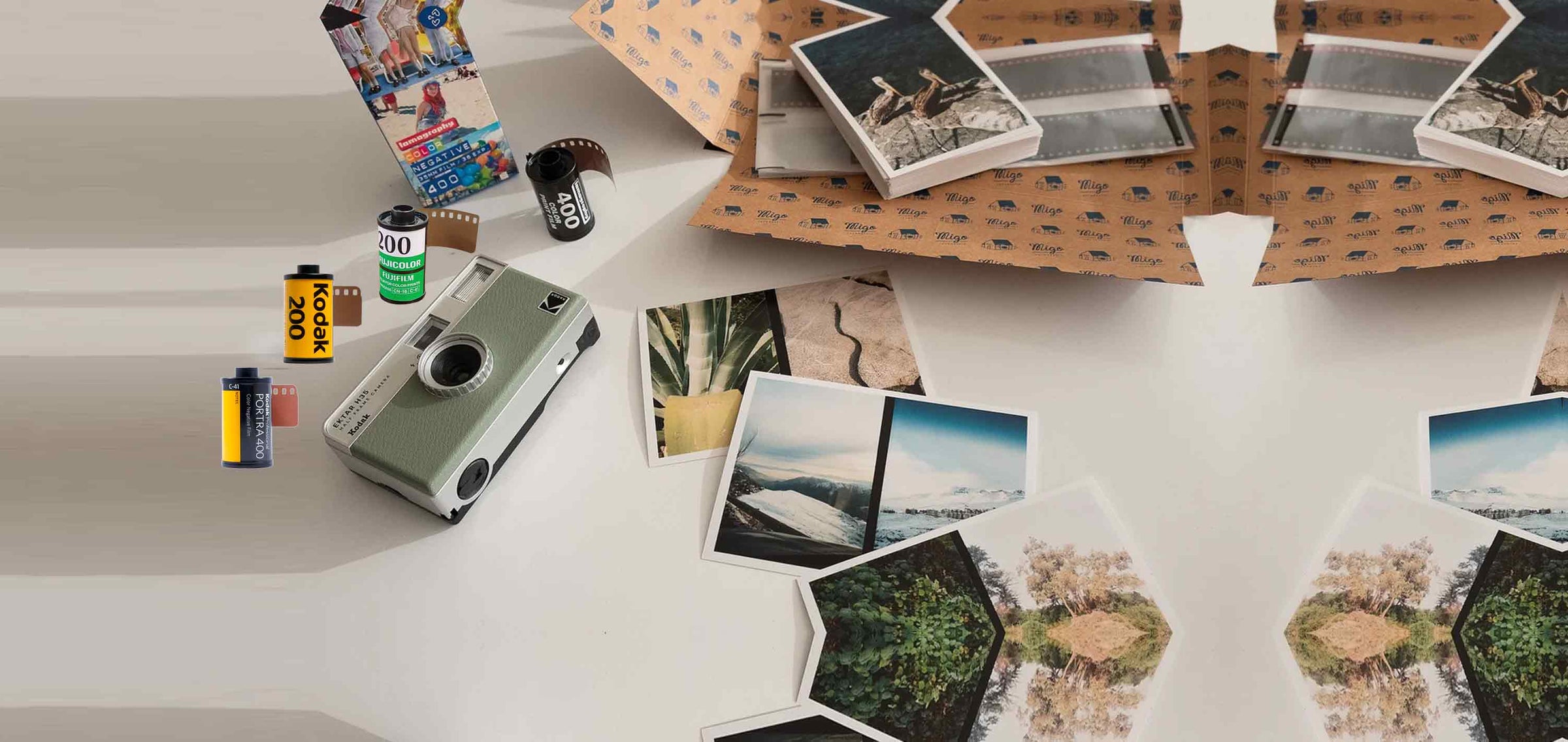 Variedad de rollos + servicio de revelado y digitalización + impresión de fotos